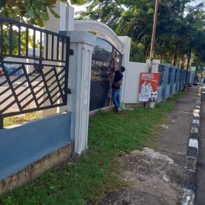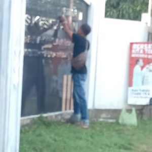 Tiba – tiba datang seseorang yang identitasnya belum jelas, dan mengelupas nama kantor dinas kesehatan di pagar depan dengan alasan untuk pindah kantor.