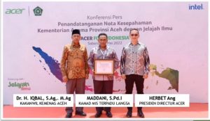 Hal itu disampaikan langsung oleh Presiden Direktur Acer, Herbet Ang pada konfrensi press Nota Persepahaman antar Kanwil Kemenag Provinsi Aceh dan Acer di Sabang, kamis (25/05/2022)