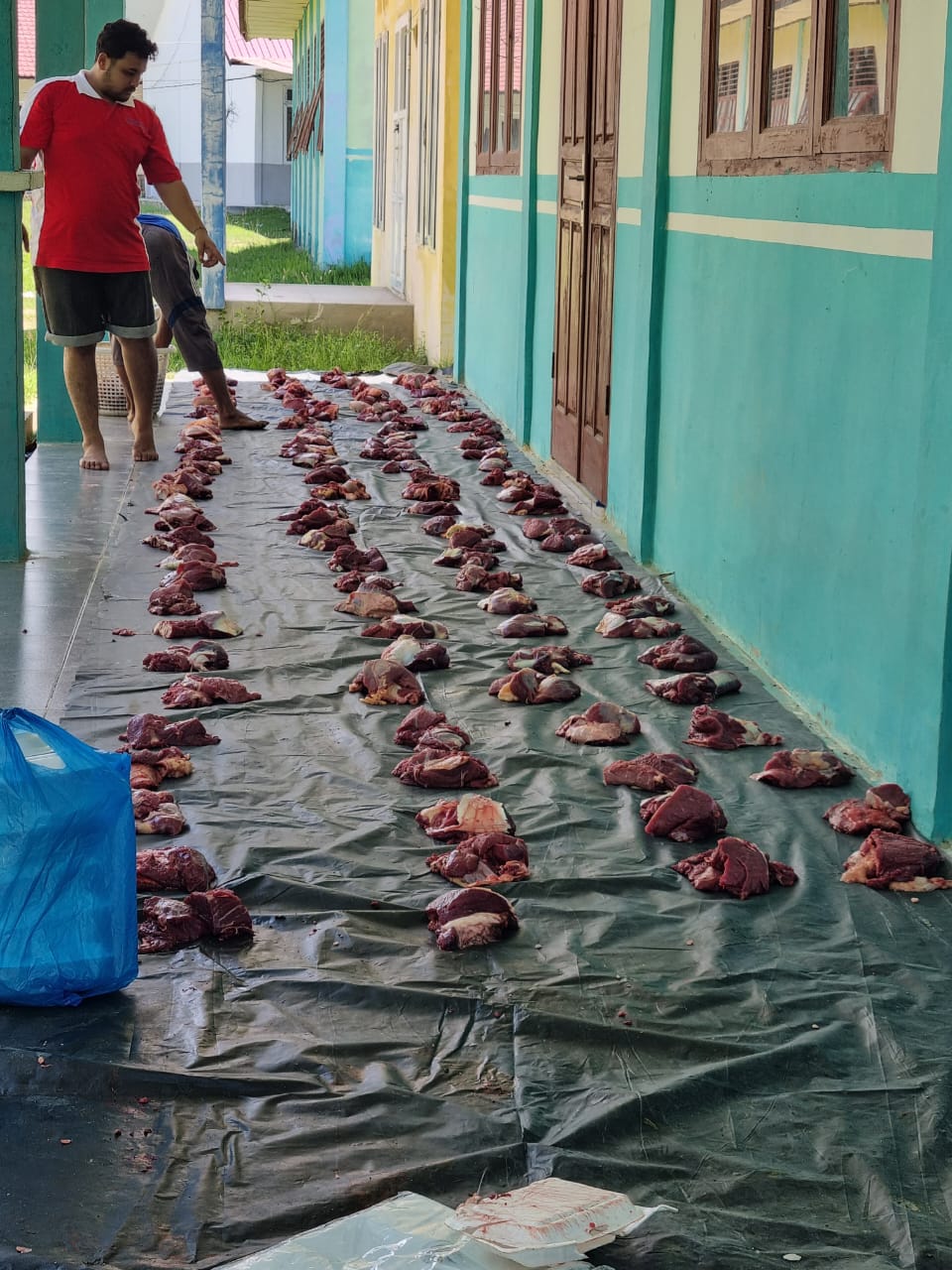 Daging kurban dibagikan kepada anak yatim dilingkungan sekolah, dan masyarakat sekitar sekolah.