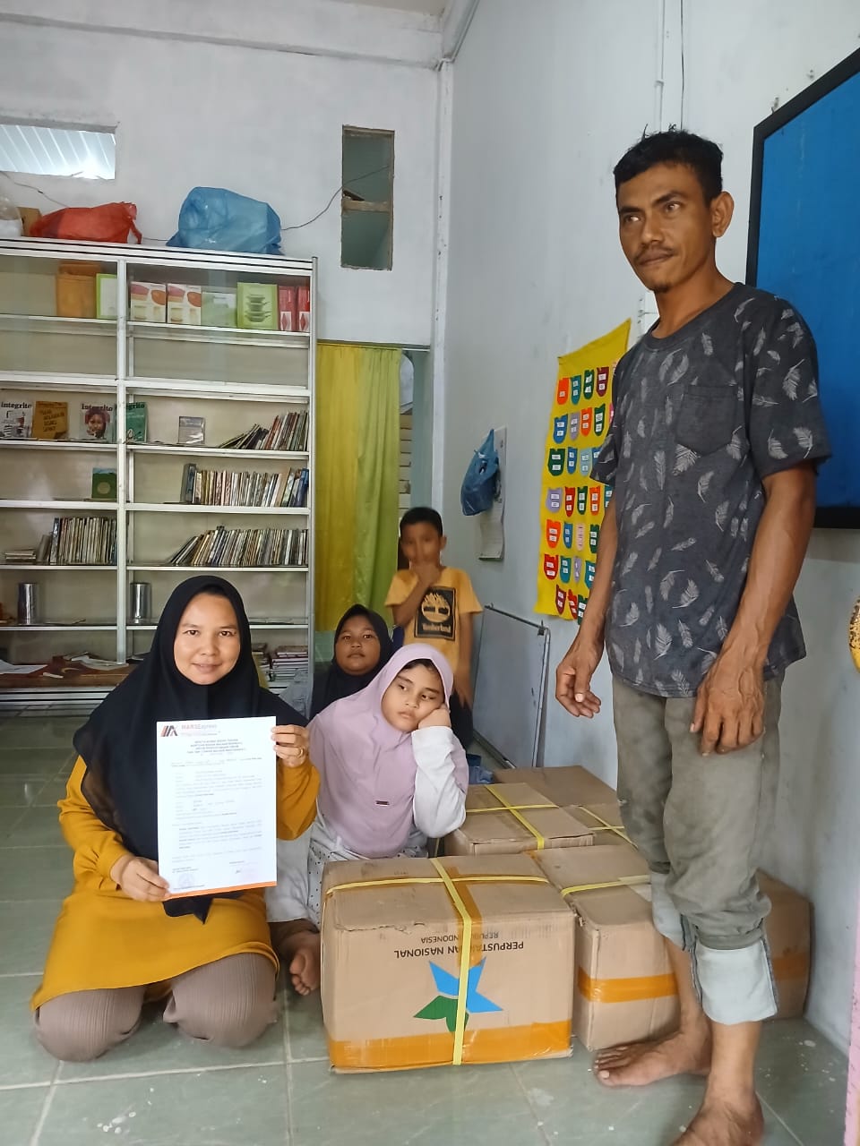 Kebahagiaan tampak dari wajah pengunjung saat membuka dus-dus yang berisi seribu buku dengan berbagai judul cerita bermutu yang sangat menunjang kegiatan literasi di Rumah Baca Saleum Cahaya ujar asnah disela-sela penanda tanganan berita acara penerimaan.