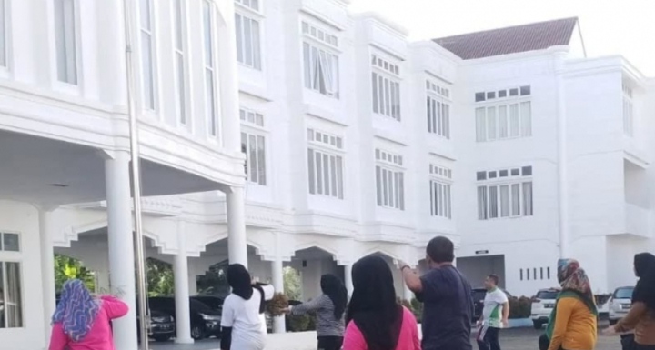 Teks foto: ASN dalam suatu kesempatan olahraga pagi di Kantor Inspektorat Sumut, Jalan Wahid Hasyim Medan.