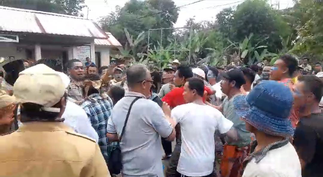 Oleh karena itu kegiatan yang semulanya akan di gelar dalam ruangan, berkahir dilaksanakan di lapangan kantor desa dengan berjalan singkat, karena diakibatkan oleh cuaca yang panas serta suasana yang diciptakan masyarakat tidak kondusif