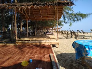 Saat kami mengabadikan beberapa foto, suasana pantai belum begitu ramai, karena biasanya jam jam 10.00 pagi pengunjung baru mulai berdatangan dan akan ramai sejak siang sampai sore hari, terutama hari minggu, begitu ungkapan salah seorang pedagang yang juga merupakan warga gampong.